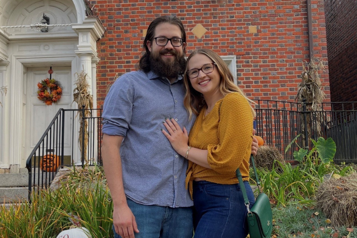 Class of 2020 alumni Jenna Stogsdill and Christopher "Carter" Fritch met as members of the Fisher men’s and women’s golf teams. They became good friends, and logged many hours studying together in Lavery Library. They married in 2020 and enjoy traveling and spending time with their rescue dog.